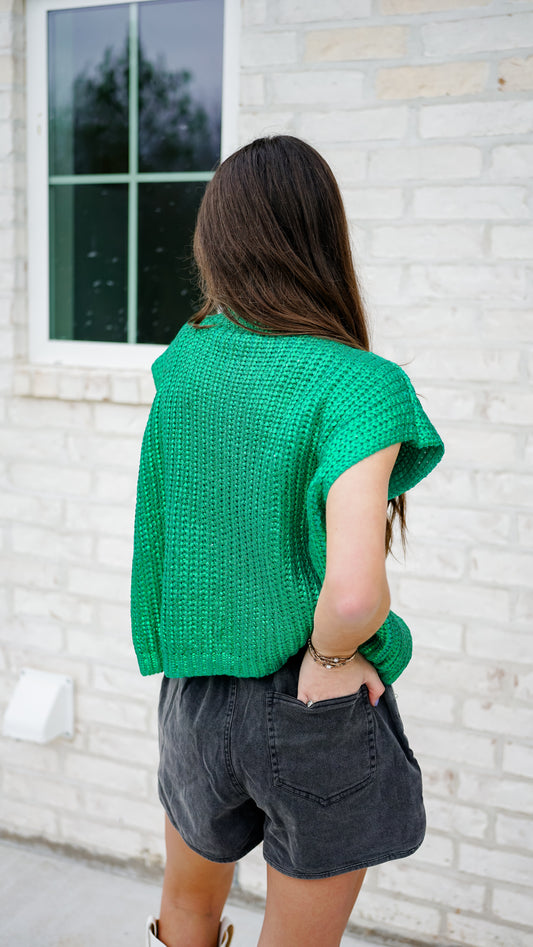 Shimmy In Shimmer Green Top