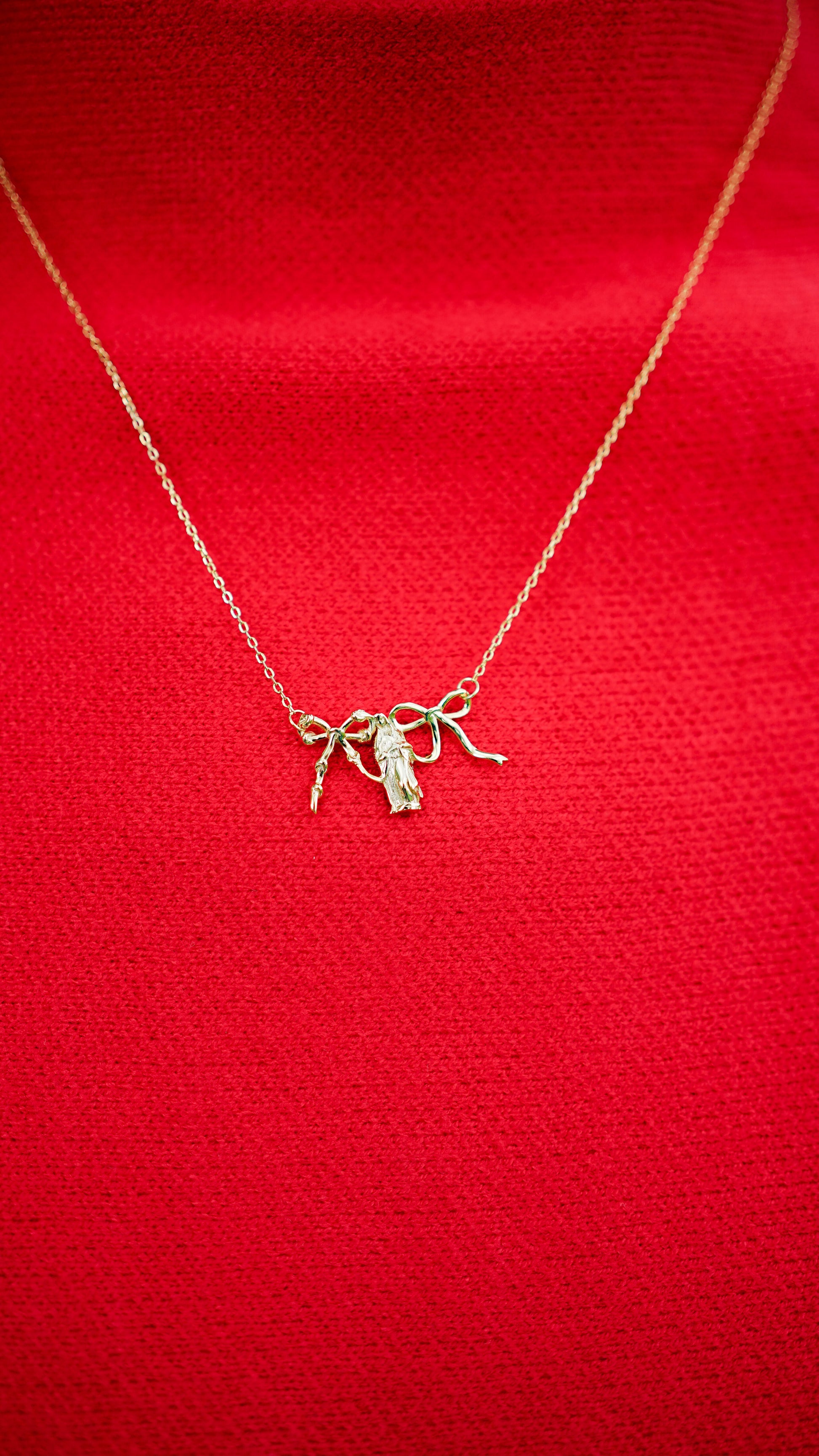 ~ Representing knots in our lives, the bow is strung through Mary's hands, symbolically undoing the knots. Wear this necklace as a reminder of the powerful role Mary plays in helping us to untangle our struggles