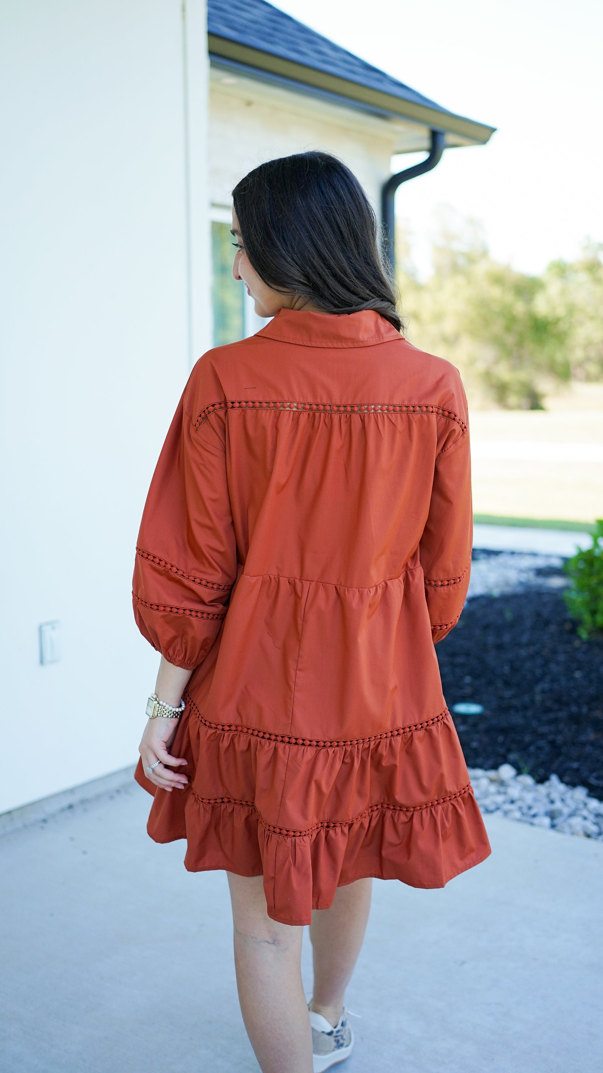 ~ Beautiful orange dress with 3/4 length sleeves