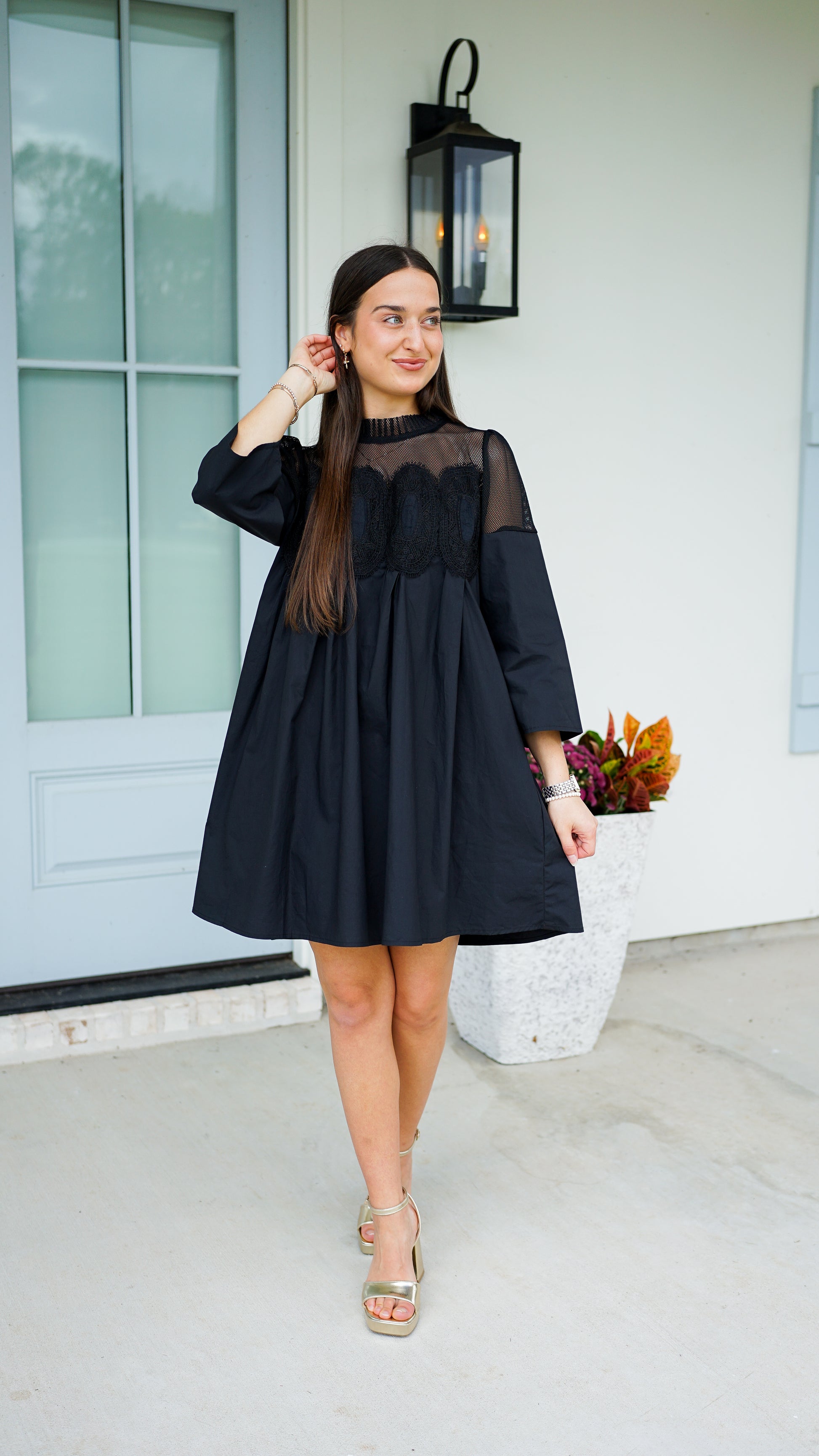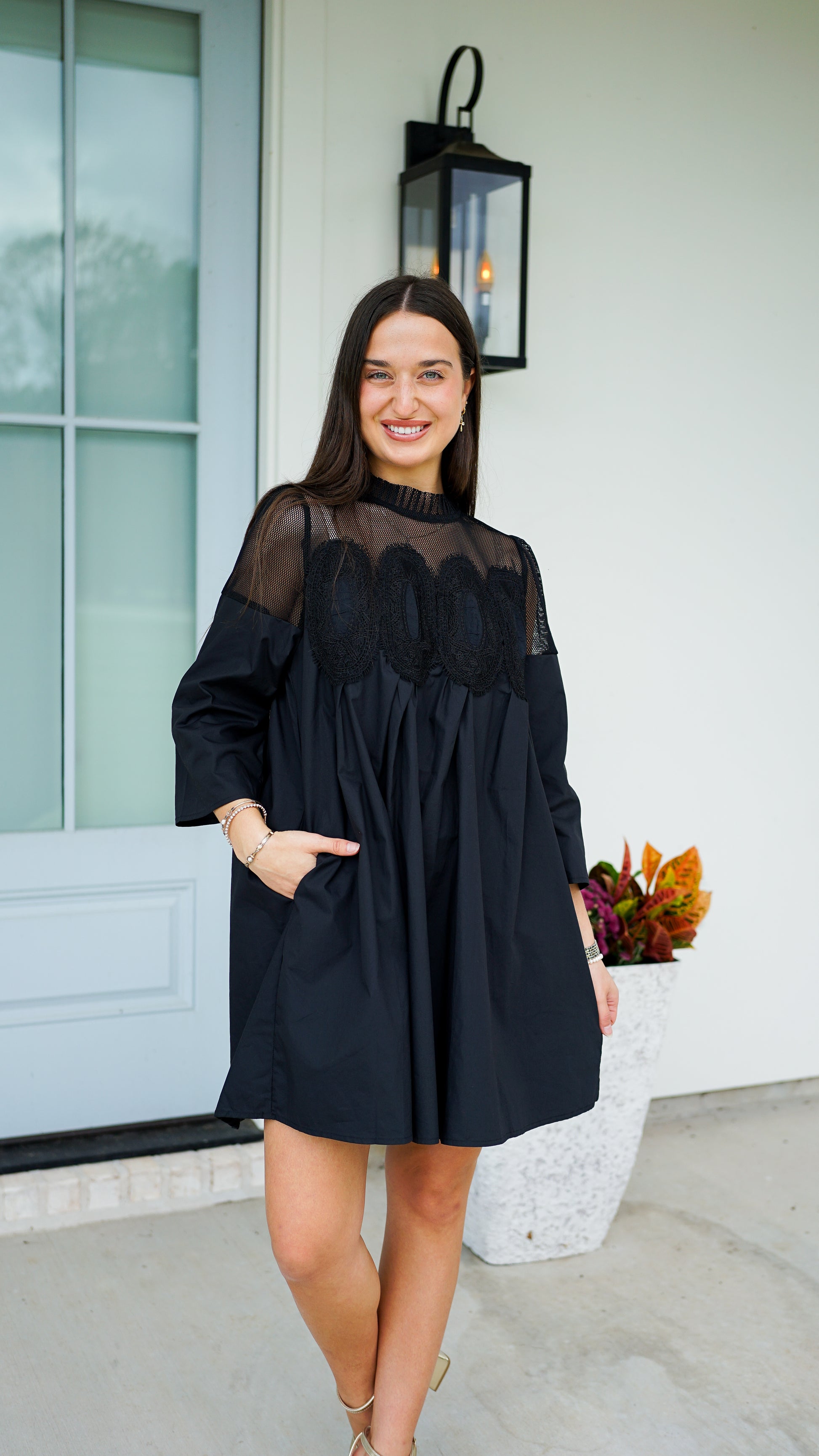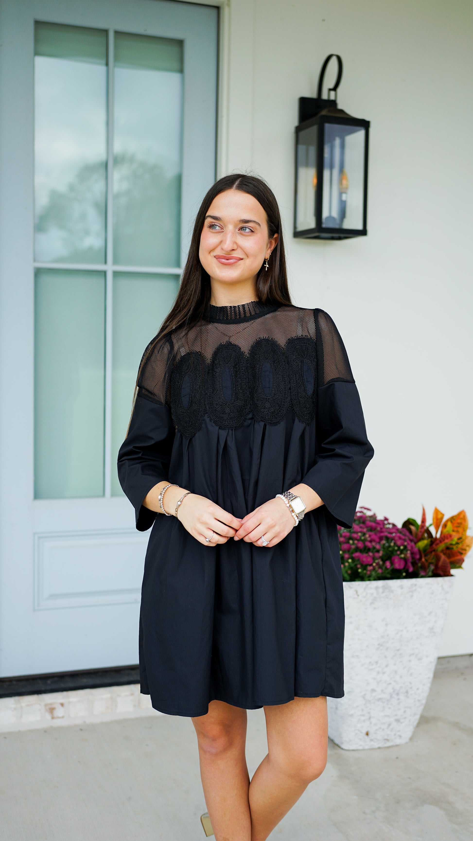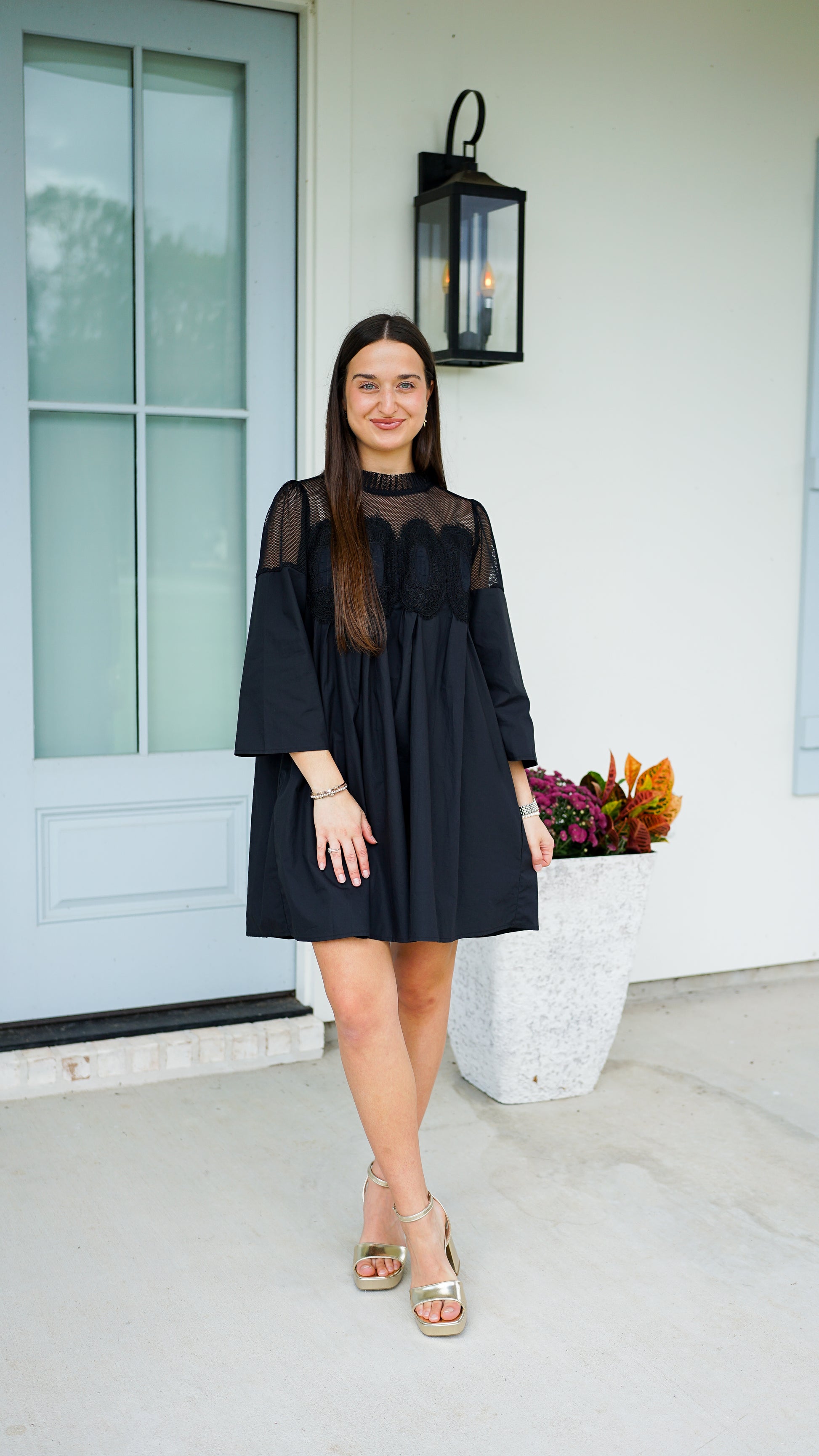 ~ Gorgeous black dress with sheer lace chest detailing and sleeves
